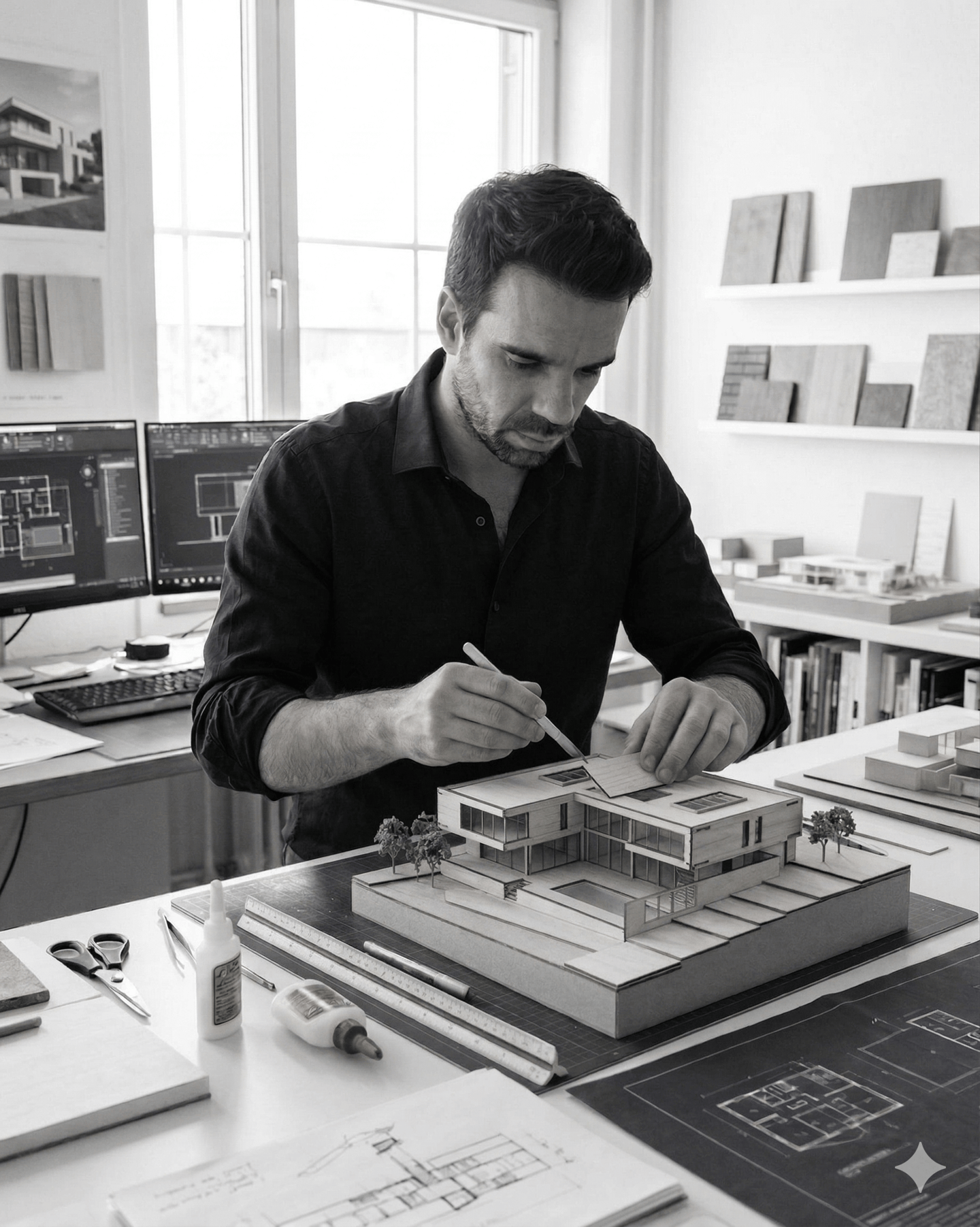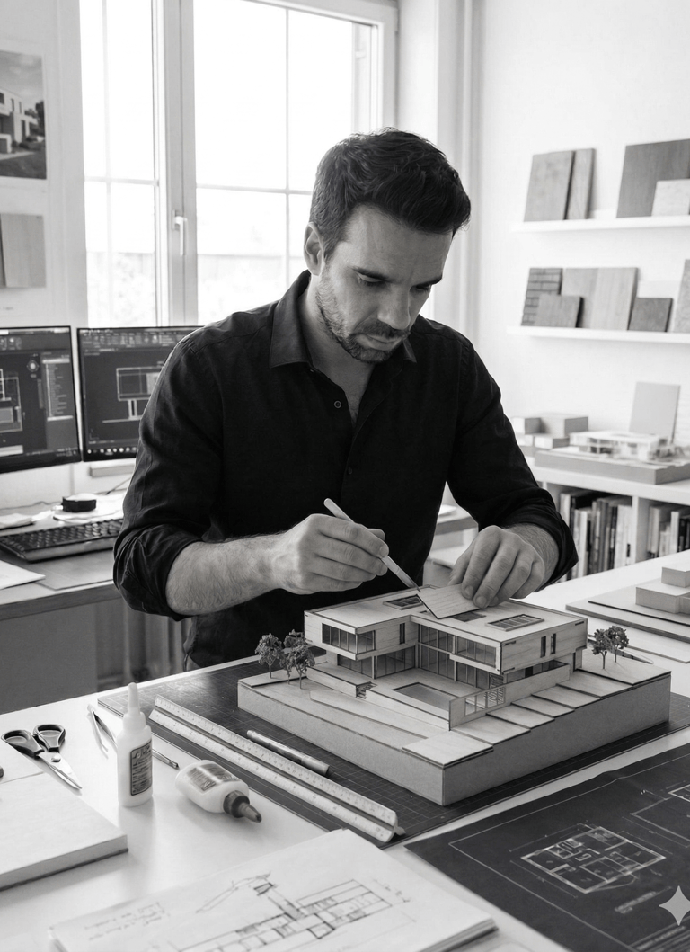 A DVMS nasceu da vontade de ir além do convencional, acompanhando cada cliente desde o primeiro esquisso até à entrega da chave. Unimos mediação, arquitetura e design num serviço 360° para que a criação da sua casa seja um processo fluido e sem falhas.